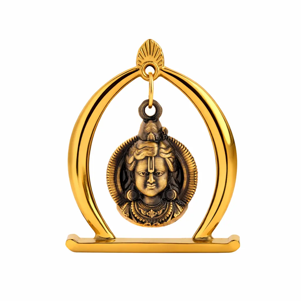 Bring divine blessings and positive energy wherever you go with this beautifully crafted Metal Shree Ram car dashboard god idol. Designed with an elegant antique gold finish, this sacred Lord Ram hanging statue features detailed craftsmanship and a premium metallic look that enhances your car dashboard, office desk, or home temple décor.